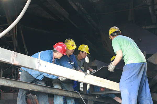 該礦洗選區(qū)按照工作計劃迅速將工器具運輸到現場,物資材料使用經修復的電滾筒、托輥、皮帶架子,頂高溫冒酷暑進行電焊作業(yè)。經過近5個小時的連續(xù)奮戰(zhàn),4號轉運站落地皮帶恢復運行,為運輸系統(tǒng)提供了可靠保障。