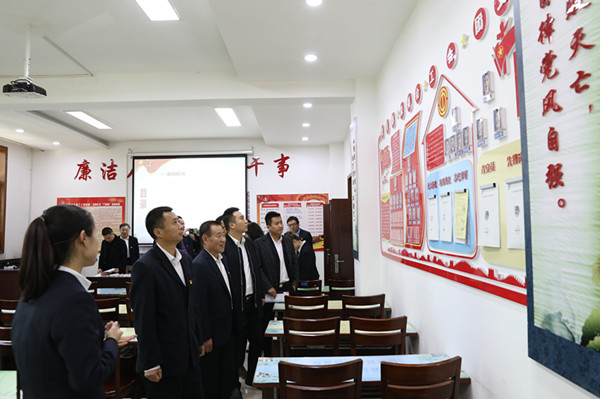 隨后,對標(biāo)人員查閱了黨群部門和機(jī)關(guān)黨支部黨建質(zhì)量管理體系資料,觀看了企業(yè)文化墻和對標(biāo)交流展板、黨務(wù)礦務(wù)公開欄。來到信息監(jiān)控調(diào)度指揮中心,通過高清視頻了解井下生產(chǎn)系統(tǒng)運(yùn)行情況。在采掘區(qū)隊學(xué)習(xí)室,觀摩了規(guī)范化黨支部建設(shè)的“墻壁文化”“書桌文化”和“品牌文化”成果,觀看了“先鋒之隊”綜采隊“一區(qū)一品”課件。在對口業(yè)務(wù)科室交流中,雙方人員就黨支部規(guī)范化建設(shè)、意識形態(tài)管理、新聞宣傳等方面進(jìn)行了探討,相互學(xué)習(xí)借鑒,攜手推進(jìn)黨建工作再上新臺階。