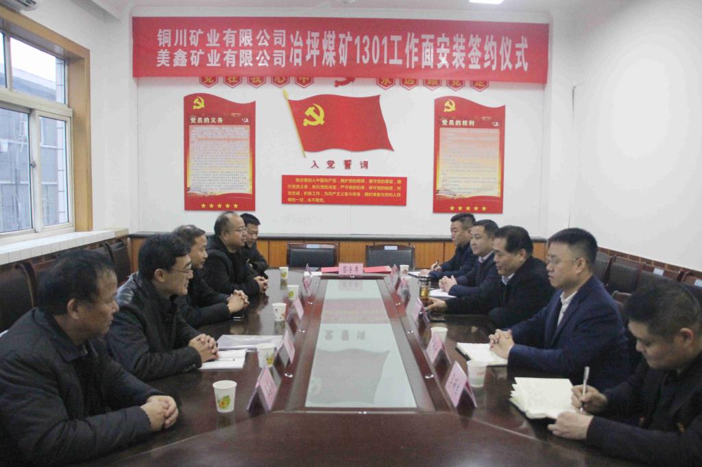 近日,公司與美鑫礦業(yè)冶坪煤礦1301工作面安裝簽約儀式在煤礦管理公司黨政會(huì)議室舉行。陜西美鑫產(chǎn)業(yè)投資有限公司常務(wù)副總經(jīng)理、美鑫礦業(yè)公司董事長(zhǎng)寧文衛(wèi)、以及美鑫礦業(yè)、煤礦管理公司雙方分管業(yè)務(wù)領(lǐng)導(dǎo)同志參加簽約儀式。公司副總工程師、煤礦管理公司黨委書記、董事長(zhǎng)李福錦受銅川礦業(yè)公司委托與美鑫礦業(yè)公司總經(jīng)理郭百?gòu)?qiáng)在與會(huì)人員的共同見證下簽署了《1301工作面安裝工程施工協(xié)議》。