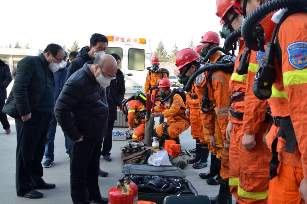 在救護(hù)大隊(duì),田光雄檢查了國家礦山應(yīng)急救援銅川隊(duì)聞警出動(dòng)情況,詳細(xì)了解了隊(duì)伍建設(shè)情況、隊(duì)伍應(yīng)急出動(dòng)程序和2019年應(yīng)急出動(dòng)情況,并對(duì)值備班裝備及個(gè)人防護(hù)裝備進(jìn)行了細(xì)致檢查。