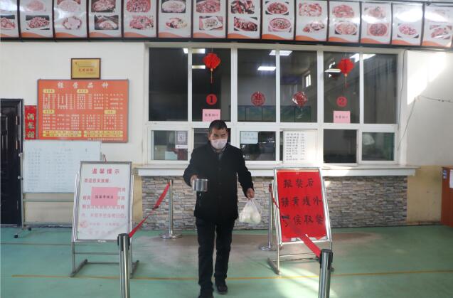 職工高月來說道:“單位讓我們自帶餐具就餐,其實是保護我們好”,目前,在項目部礦區(qū)職工打飯已成為了新時尚,不僅減少了人與人之間的病菌傳播,更是為抗擊疫情防線筑起了一道“防護網(wǎng)”。