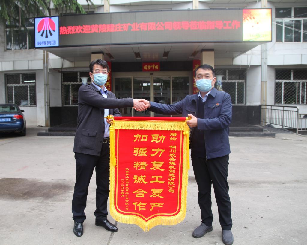 在欣盛煤機公司,建莊礦業(yè)黨委書記、董事長雷貫亮向欣盛煤機公司領(lǐng)導送上印有“助力復工復產(chǎn),加強精誠合作”的錦旗,以表達對服務礦井保障生產(chǎn)工作的肯定和謝意。隨后,欣盛煤機公司經(jīng)理常忠甫,副經(jīng)理劉劍及相關(guān)部門負責人與建莊礦業(yè)公司領(lǐng)導及相關(guān)工作人員在公司會議室進行了座談交流。