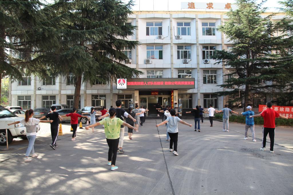 該公司機(jī)關(guān)四樓會(huì)議室熱鬧非凡,來自工會(huì)的陳夢(mèng)之和辦公室的李穎耐心教導(dǎo),各位學(xué)員學(xué)的用心,在“教練”的指導(dǎo)下個(gè)個(gè)精神飽滿,跟著節(jié)拍展臂、轉(zhuǎn)身、踢腿、跳躍,舒展著身體,很快掌握了基本要領(lǐng),而且動(dòng)作規(guī)范。同時(shí),利用每天班前時(shí)間,各個(gè)部門(車間)都會(huì)組織職工進(jìn)行第九套廣播體操的訓(xùn)練,和著音樂節(jié)拍,列隊(duì)整齊,進(jìn)入了每天班前操時(shí)間,伴隨著每一個(gè)口令,認(rèn)真地練習(xí)每一個(gè)動(dòng)作,充分展現(xiàn)了公司干部職工積極向上、充滿活力的精神面貌。