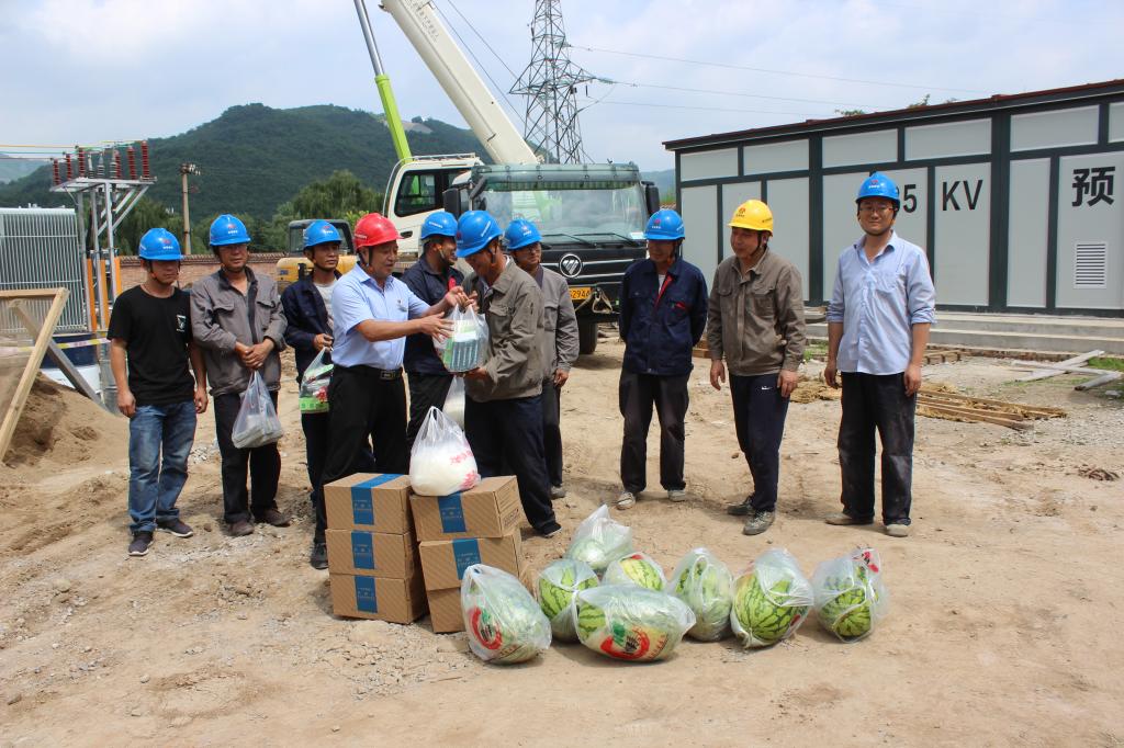 “日輪當(dāng)午凝不去,萬國如在洪爐中”。在這炙熱的夏天,欣榮配售電公司黨總支書記帶領(lǐng)工會、黨群、運(yùn)行維護(hù)等部門人員分別深入到該公司下石節(jié)35KV無人值守變電站施工現(xiàn)場及春林、安子溝35KV變電站和對外托管運(yùn)行的冶坪35KV變電站,慰問正在高溫下奮戰(zhàn)的一線職工,為他們送去夏日的清涼和關(guān)愛。