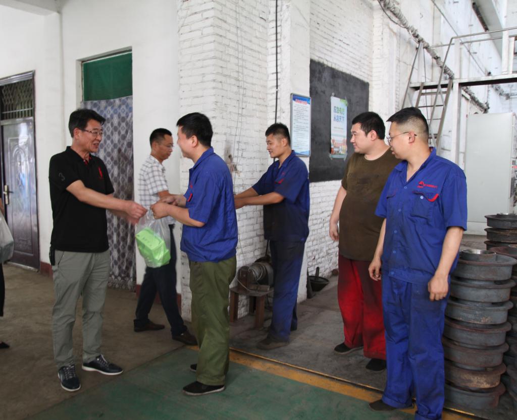 “這高溫天氣,公司領(lǐng)導(dǎo)來(lái)咱生產(chǎn)現(xiàn)場(chǎng)為大家送清涼,給我們加油打氣、叮囑安全,讓我們提振信心,更有干勁,一定要為公司順利實(shí)現(xiàn)年度各項(xiàng)任務(wù)目標(biāo)擼起袖子加油干?!泵簩\囬g主任孫克亭說(shuō)道。