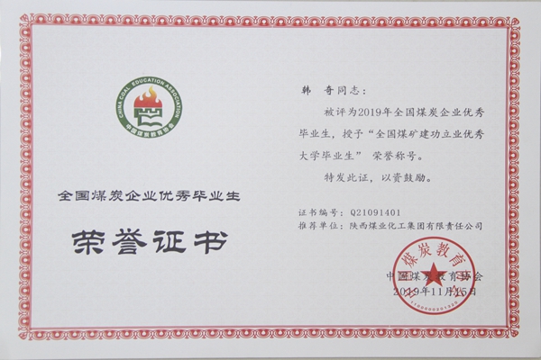 2014年7月,從河南理工大學(xué)采礦工程專業(yè)畢業(yè)的韓奇懷著青春夢(mèng)想,走進(jìn)了陳家山煤礦。面對(duì)當(dāng)時(shí)生活居住條件艱苦,技術(shù)人員困乏的陳家山煤礦,他沒(méi)有退縮,而是履行一名煤礦大學(xué)生、黨員干部的責(zé)任與擔(dān)當(dāng)。他堅(jiān)持“在工作中學(xué)習(xí)、學(xué)習(xí)中工作”,利用業(yè)余時(shí)間學(xué)習(xí)相關(guān)專業(yè)技術(shù),不斷充實(shí)自我,先后取得了國(guó)家注冊(cè)安全工程師、礦業(yè)工程二級(jí)建造師、建筑施工三類人員B證,煤炭建設(shè)工程初級(jí)造價(jià)員等職業(yè)資格證。在施工中勤于思考,積極總結(jié)施工經(jīng)驗(yàn),在《工程技術(shù)》上發(fā)表了《復(fù)雜條件下大斷面煤巷高強(qiáng)度復(fù)合支護(hù)優(yōu)化及應(yīng)用》、《軟巖巷道高強(qiáng)度復(fù)合支護(hù)優(yōu)化及應(yīng)用》等兩篇實(shí)用性論文,同時(shí)在《工業(yè)A》上發(fā)表了《陳家山煤礦419回順掘進(jìn)工作面水害防治經(jīng)驗(yàn)討論》一文。在他參加工作僅僅6年中,先后獨(dú)立完成了多個(gè)采掘工作面設(shè)計(jì)和技術(shù)創(chuàng)新科研項(xiàng)目,榮獲了多項(xiàng)榮譽(yù)稱號(hào)。