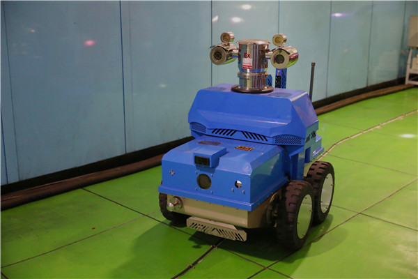 安裝在井下10千伏變電所的礦用隔爆兼本安型輪式巡檢機器人,采用四輪驅(qū)動設計,由機器人本體、無線基站、磁性軌道、自動充電裝置、遠程控制站組成巡檢系統(tǒng)。借助導航、定位功能,使用預定程序或APP終端操控,機器人巡檢時沿設定軌線行走,可升降的雙視云臺搭載的高清攝像儀、紅外熱成像儀和多種傳感器,能夠識別設備儀表,分析數(shù)據(jù),檢測溫度、氣體等工作環(huán)境,實現(xiàn)全方位、無盲點監(jiān)控。將采集到的信息進行存儲歸類,依靠無線基站向遠程工作站、調(diào)度指揮中心實時傳輸數(shù)據(jù)。依靠智能化大數(shù)據(jù)分析功能,使用智能感知技術算法進行綜合分析,可以準確判斷設備運行狀態(tài),對設備運行故障進行超前預判預警。