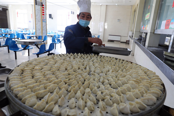 當(dāng)日中午,該礦北風(fēng)井職工食堂內(nèi)喜慶的大紅燈籠高高掛起,奏響了過年的喜慶樂曲,現(xiàn)場喜氣洋洋、氣氛熱烈。礦黨政領(lǐng)導(dǎo)與全礦女職工及食堂工作人員一起開始了這場滿含喜悅、團(tuán)圓、祝福的“喜慶新春、情暖職工”送餃子活動。大家戴上口罩衛(wèi)生帽,消毒雙手卷起袖管,分工進(jìn)行切菜、拌餡、和面、搟皮,為一線職工包餃子送團(tuán)圓忙得不亦樂乎。