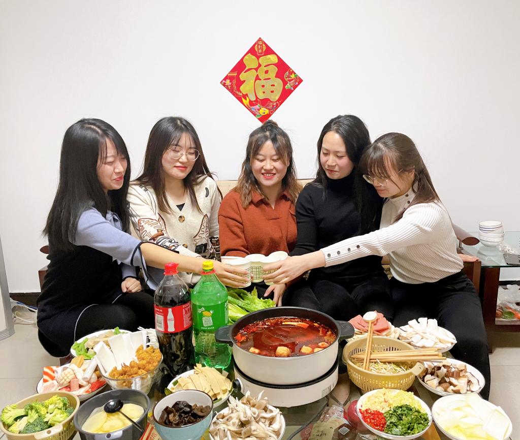 李穎:“媽,過年好呀!你看,我們這里可熱鬧了,我們幾個家在外地的女生聚在一起過年呢……”