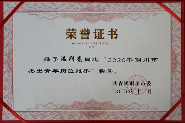 工作10多年來,他一步一個腳印,一步一個臺階,作為一名青年黨員,他時刻以一名共產(chǎn)黨員的標準嚴格要求自己,愛崗敬業(yè),開拓創(chuàng)新,憑借青年特有的激情與沖勁,發(fā)揮著共產(chǎn)黨員的先鋒模范作用。在近日共青團銅川市委表彰會上,他被評為“2020年銅川市杰出青年崗位能手”榮譽稱號。