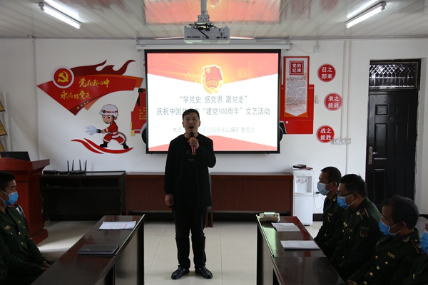 近日,陳家山礦團委舉辦的“學(xué)黨史 頌黨恩 跟黨走”慶祝建黨100周年文藝演出下區(qū)隊第一場在綜采隊學(xué)習(xí)室拉開帷幕,通過傳承紅色基因,激發(fā)黨員干部不忘初心、牢記使命、愛黨愛國、奮斗前行。