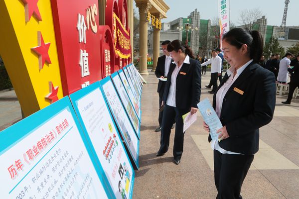 上午十點,該礦廣大干部職工齊聚欣怡廣場,共同參與了此次職業(yè)病防治法宣傳活動。陜西省銅川市職業(yè)病防治院職防科科長時桂英,首先對此次開展職業(yè)病防治健康知識宣傳的目的和意義進行了說明,向廣大干部職工詳細解讀了《職業(yè)病防治法》的相關(guān)內(nèi)容。重點介紹了高溫、噪聲、粉塵、有機溶劑類毒物等方面的常見致病性職業(yè)危害及預防,科學引導全礦各崗位工種人員結(jié)合自身工作實際,提早做好職業(yè)病預防,落實好各項職業(yè)健康防護措施,遠離職業(yè)病危害,永葆生命健康。