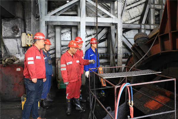 根據(jù)起吊設(shè)備等特殊作業(yè)和平行交叉作業(yè)的實(shí)際,礦井實(shí)行領(lǐng)導(dǎo)干部分片包區(qū)“雙帶班、雙跟班”,安檢員分包項(xiàng)目“陪護(hù)式”專盯,公司駐礦檢修工作小組班班檢查指導(dǎo)的方式,各級(jí)管理人員自檢修開始全程跟蹤監(jiān)督施工現(xiàn)場(chǎng)安全管理。礦井檢修領(lǐng)導(dǎo)小組下轄安全、質(zhì)量、供應(yīng)保障、綜合組織等7個(gè)專業(yè)小組成員駐守現(xiàn)場(chǎng),監(jiān)督安全措施落實(shí),對(duì)標(biāo)逐項(xiàng)嚴(yán)控施工質(zhì)量,嚴(yán)明勞動(dòng)紀(jì)律規(guī)范施工工序。施工作業(yè)人員對(duì)照各項(xiàng)目崗位風(fēng)險(xiǎn)提醒卡,消除隱患安全作業(yè)。截止15日下午4時(shí),主斜井新舊膠帶接頭開始硫化,洗選系統(tǒng)搭接項(xiàng)目中舊設(shè)備拆除有序進(jìn)行。