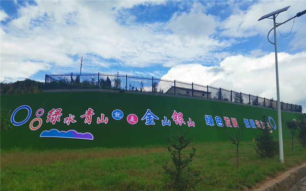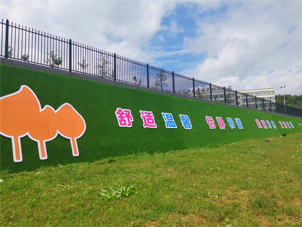 為充分展示美麗礦區(qū)建設(shè)成果,該礦經(jīng)過實(shí)地調(diào)研論證,對(duì)生活區(qū)長(zhǎng)200余米1000余平方米的外墻護(hù)坡進(jìn)行增綠添景提升改造,整體鋪設(shè)仿真草皮,以生態(tài)環(huán)保、美麗和諧為主題,量身制作“綠水青山就是金山銀山,綠色發(fā)展、低碳生活,魅力玉華、錦繡之地”等5組理念標(biāo)語張貼于墻體,最大程度的貼合和展現(xiàn)“最美職工生活區(qū)”建設(shè)成果和綠色礦山建設(shè)風(fēng)采。