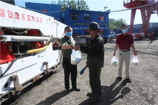 早9時30分,在該礦區(qū)井口工業(yè)廣場龍門吊下,礦黨政班子成員帶領(lǐng)著黨群部工作人員,親手將一份份含有白糖、茶葉、藿香正氣水、清涼油和蚊香的暖心大禮包,分別遞到了正在工作崗位上忙碌的職工們手中,并囑咐他們做好個人防護(hù),保持好充足的精力和體力,干好本職工作。