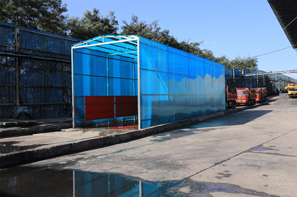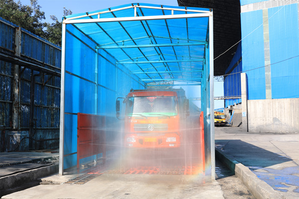 該礦堅定踐行生態(tài)文明理念,持續(xù)加大環(huán)境保護基礎(chǔ)設(shè)施建設(shè)投入,按照降低揚塵環(huán)保標(biāo)準(zhǔn)要求,礦井聯(lián)合環(huán)保科技公司投入近百萬元對洗車臺進行第三次升級改造。此沖洗裝置由5組洗車臺組成,每組配套1臺強力水泵使單泵流量可達到45m3/h,電控系統(tǒng)采取自動、手動與遙控控制等多種工作模式。車輛駛?cè)肫脚_后實現(xiàn)無人值守全程自動化沖洗,亦能實現(xiàn)每組設(shè)備單獨控制,提供立體式全包圍的強勁沖洗力,將車輛貨箱、輪胎及底部等整體沖洗干凈。 洗車臺外部建有鋼架結(jié)構(gòu)透光防塵降噪棚,隔絕洗車時噪音和沖洗揚塵,平臺周圍建有隔離堤、排水溝,將污水全部收集進入污水處理站,進行凈化和循環(huán)利用,節(jié)約資源保護礦區(qū)水源。日常管理運行由銷售部門嚴(yán)格把關(guān),出廠車輛經(jīng)過洗車臺沖洗干凈后方能駛出。