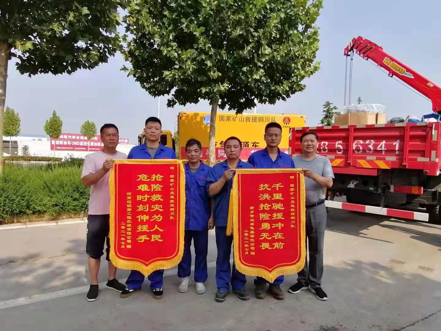 真心感謝你們,你們辛苦了......被積水圍困多日的廠區(qū)負責人將兩面印有“危難時刻伸援手,搶險救災為人民”、“抗洪搶險勇無畏,千里馳援沖在前”的錦旗送到了欣盛公司搶險隊員的手中,以此表達對他們的感激之情。