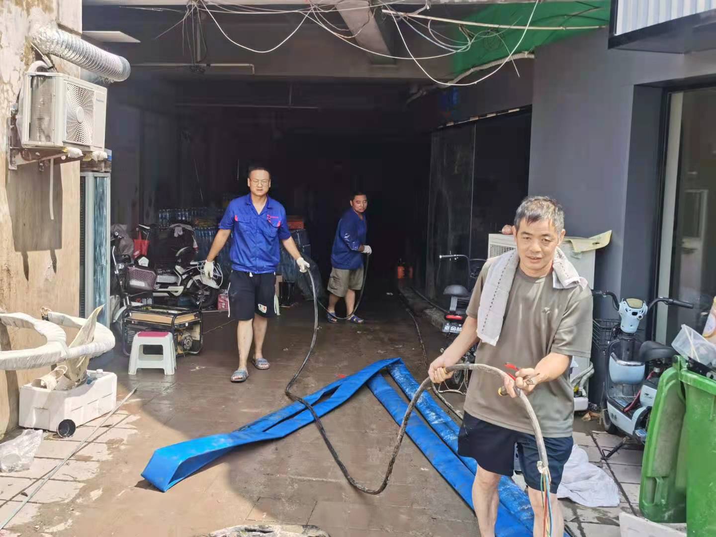 7月23日上午11時,接到了公司緊急馳援河南的電話后,正在車間修理機電設備的電工蔣佳琳曾有過片刻猶豫。一邊是懷孕5個月的妻子,正需要親人陪護;一邊是因特大暴雨受災,翹首企盼援助的河南老鄉(xiāng)。去,還是不去?作為一名共產黨員,就應該責無旁貸、挺身而出!作為一名銅煤機電人,這更是組織最需要的關鍵時刻!小蔣心中有了自己的答案。 當天下午,安頓好家里,蔣佳琳和另外三名同事一起,帶著工具箱和工作服,踏上了奔赴救援搶險的主戰(zhàn)場。 持續(xù)的暴雨天氣,造成新鄉(xiāng)市多個小區(qū)線路損壞,跳閘停電,按照現場統(tǒng)一指揮,欣盛公司救援人員負責搶修康橋美庭小區(qū)地下車庫及周圍超市電路任務,仔細勘察現場環(huán)境,迅速對故障線路和設備展開排查,結合實際情況,對救援搶修方案進一步優(yōu)化,經過50多個小時連續(xù)作戰(zhàn),小區(qū)地下車庫及超市排水排澇及電路搶修任務順利完成。 期間,搶修隊員對小區(qū)線路進行施工作業(yè)過程中,手指被鐵絲劃傷,小腿被異物擦破,但他們依然奮戰(zhàn)在第一線,用實際行動體現了共產黨員的模范先鋒帶頭作用。