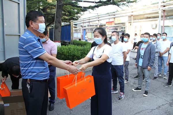 “師傅,中秋節(jié)快樂,這是您的節(jié)日禮物,請拿好?!?“咱們礦始終把職工放在心上,每到節(jié)日就會送上福利,好幸福啊?!背灾鴦倓偘l(fā)到手的月餅,職工們個個喜笑顏開,贊不絕口。
