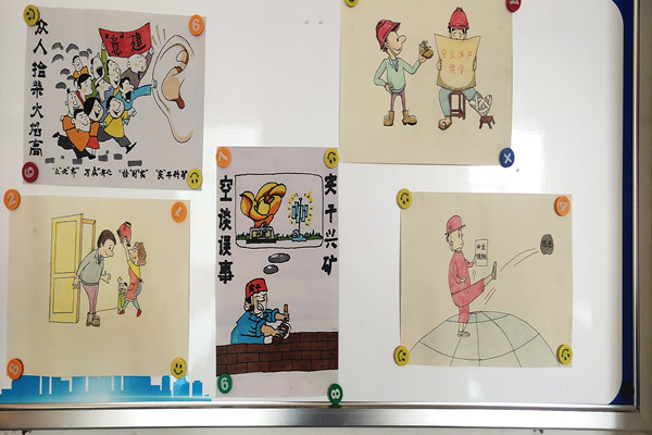 這些由職工自主繪制的安全漫畫(huà)是結(jié)合安全生產(chǎn)和工作實(shí)際發(fā)揮想象力以生動(dòng)的語(yǔ)言、形象的動(dòng)作、豐富的畫(huà)面展現(xiàn)了礦井事故預(yù)防、安全理念、企業(yè)文化等,體現(xiàn)安全生產(chǎn)與職工自身健康、企業(yè)經(jīng)濟(jì)效益息息相關(guān)。每幅漫畫(huà)都閘述著安全的重要性,在職工繪制的過(guò)程中讓安全警示教育更深入人心。