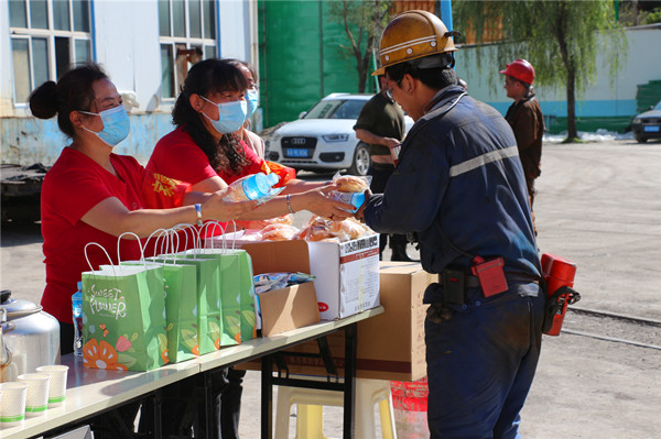 30日上午,伴隨著聲聲“辛苦了,向職工致敬”,礦黨政領(lǐng)導(dǎo)班組成員來(lái)到北風(fēng)井工業(yè)廣場(chǎng)為剛升井和要入井的職工送來(lái)暖心慰問(wèn),將一份份面包、牛奶、香皂、毛巾的飽含情誼的關(guān)愛(ài)“禮包”送到職工手中,一一拍肩握手噓寒問(wèn)暖,向大家守崗位保供應(yīng)、不畏難比奉獻(xiàn)的敬業(yè)精神和實(shí)干付出表示衷心的感謝和誠(chéng)摯的敬意。