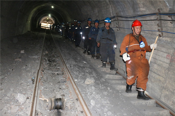 9月29日,副井提升系統(tǒng)更換首繩工作有序進(jìn)行,罐籠停止運(yùn)行,職工需要從北風(fēng)井工業(yè)廣場(chǎng)徒步行進(jìn)2000余米,再奔赴各崗位和出入井上下,其中北斜井巷道17°大傾角、700余米共數(shù)千階臺(tái)階,徒步行進(jìn)將對(duì)體力和毅力帶來(lái)重重考驗(yàn)。又正值智能化綜采設(shè)備安裝硬仗即將打響和保障供應(yīng)的關(guān)鍵關(guān)口,全礦干部職工在艱巨任務(wù)和艱辛征途面前不畏艱難,勇?lián)厝我闳贿x擇節(jié)日期間堅(jiān)守崗位忙生產(chǎn)。