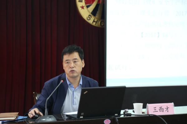 王西才以《落實(shí)“三位一體” 力創(chuàng)標(biāo)準(zhǔn)化一級(jí)礦井》為題,通過互動(dòng)交流、圖文并茂授課的方式,系統(tǒng)地對(duì)《煤礦安全生產(chǎn)標(biāo)準(zhǔn)化》新標(biāo)準(zhǔn)中的各條各項(xiàng)進(jìn)行了詳細(xì)的講解。重點(diǎn)對(duì)新標(biāo)準(zhǔn)所涉及的安全風(fēng)險(xiǎn)分級(jí)管理、事故隱患排查治理、通風(fēng)、地質(zhì)災(zāi)害防治與測量、采煤、掘進(jìn)、機(jī)電等專業(yè)知識(shí),以及新《評(píng)分方法》重大亮點(diǎn)中的煤礦構(gòu)建安全風(fēng)險(xiǎn)分級(jí)管控和事故隱患排查治理雙重預(yù)防性機(jī)制的具體方法進(jìn)行了詳細(xì)的講解。