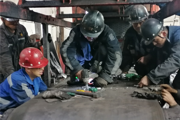 新膠帶接頭硫化完成,就到了主斜井膠帶更換的關鍵時刻。該礦黨政按照原計劃制定好的主斜井膠帶更換施工方案,分工合理、全員行動、迅速出擊,以此次主斜井膠帶更換為重點,在主斜井井口位置處搭建硫化平臺,采取舊帶拖新帶和人工松緊放帶的方式,硫化更換舊膠帶與新膠帶接頭,待新膠帶接頭運行到指定地點后,再拆除舊帶硫化新帶接頭,完成此次主斜井膠帶更換整體任務。期間,該礦還更換了膠帶運輸機滾筒、電機和煤倉等,這是自柴家溝井建礦有史以來主斜井膠帶整體更換還是第一次。