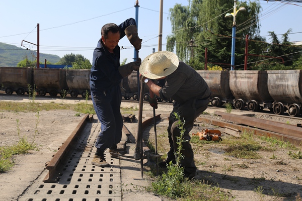 運(yùn)輸區(qū)職工在烈日炎炎的戶外對鐵軌進(jìn)行加工,此時鐵軌已經(jīng)被太陽“曬”透,表面已有七八十度。