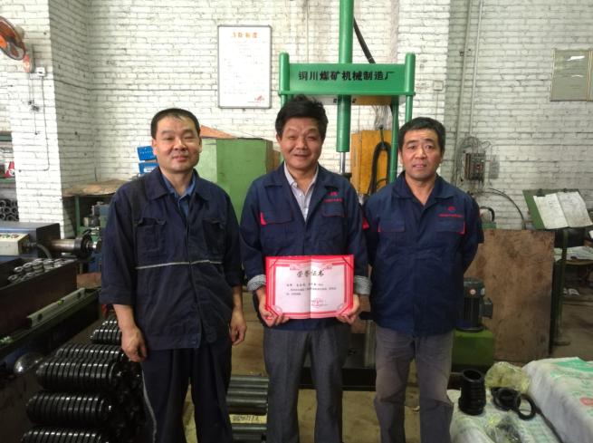 “你們的‘五小’革新成效顯著,研制成功的緩沖托輥壓裝機(jī),既提高了工效質(zhì)量,又降低了勞動強(qiáng)度,希望今后大家繼續(xù)集思廣益,引領(lǐng)職工創(chuàng)新創(chuàng)效,到我們還來為大家頒獎!”