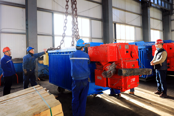 設(shè)備入井前夕,礦井組織開(kāi)展供電供液系統(tǒng)安裝專(zhuān)項(xiàng)安全風(fēng)險(xiǎn)辨識(shí),全面排查運(yùn)輸、安裝等環(huán)節(jié)的措施、工藝、環(huán)境、人員等,嚴(yán)把設(shè)備運(yùn)輸和安裝的質(zhì)量關(guān)。傾全礦之力集中基層技術(shù)過(guò)硬供電專(zhuān)業(yè)人員,按期完成鋪設(shè)13000米供電電纜的艱巨任務(wù),集合力高質(zhì)量推進(jìn)各子系統(tǒng)供電接入。 經(jīng)過(guò)近6小時(shí)安全運(yùn)輸,長(zhǎng)距離供電供液系統(tǒng)所用4臺(tái)移變?nèi)宽樌诌_(dá)目的地,將相繼接入輸出供用電,為高質(zhì)量推進(jìn)智能化綜采工作面建設(shè)站崗服務(wù)。