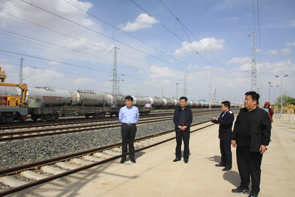 化工南車站承擔(dān)著榆林地方企業(yè)化工產(chǎn)品的運(yùn)輸任務(wù),車站停滿了整裝待發(fā)的車輛。員工們有條不紊地進(jìn)行著作業(yè),該分公司領(lǐng)導(dǎo)詳細(xì)查看了員工培訓(xùn)室、食堂、宿舍、庫(kù)房、工作場(chǎng)地,叮囑隨行的有關(guān)負(fù)責(zé)人,要讓職工住好吃好,把環(huán)境治好管好,像在家里的感覺(jué)一樣。