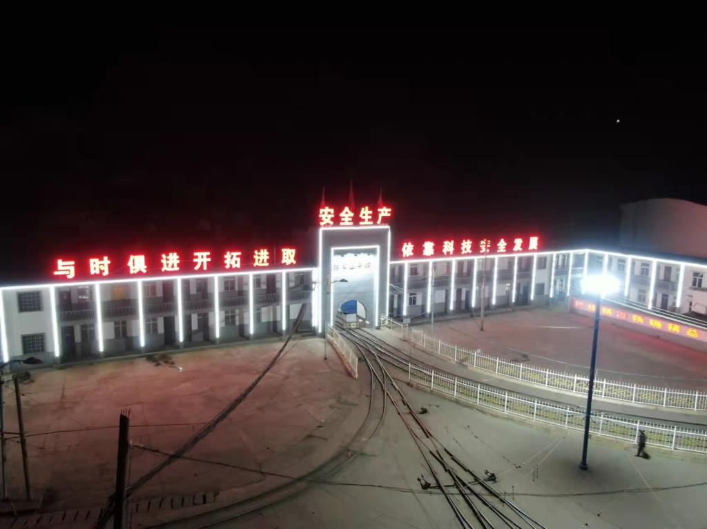 在該礦井口,“安全生產(chǎn)—陳家山平硐”幾個字在燈光照射下顯得格外的英姿颯爽,兩邊的“與時俱進 開拓進取”、“依靠科技 安全發(fā)展”字牌更是給礦區(qū)的夜景添注了一道獨特的亮麗景象。 俯視礦區(qū)夜景時,大氣、簡約的夜間燈光手法,凸顯建筑的美感和雄姿,通過燈光控制,時而旋律動感,時而寧靜悠然,形成了一個動感、藝術(shù)感相結(jié)合的“幸福家園”。 據(jù)悉,本次亮化工程按照營造氛圍、亮化礦區(qū)、勤儉節(jié)約、低碳環(huán)保、安全和諧的原則進行裝扮點亮,給人以流光溢彩的視覺效果,為礦區(qū)更添喜慶和光輝。