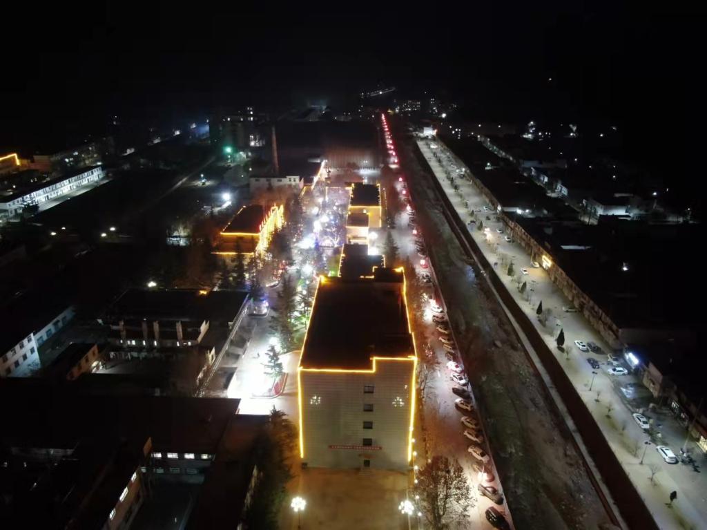 夜幕降臨時,步入礦區(qū),張燈結(jié)彩、燈光璀璨,每一棵光鮮亮麗的樹上都像是結(jié)滿了剛成熟的柿子,閃閃發(fā)光,熠熠生輝的彩燈纏繞在樹枝上顯得格外的妖嬈嫵媚,寓意著點亮今天、照亮明天、迎接未來。