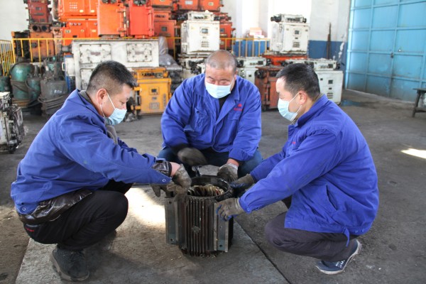 “團(tuán)隊(duì)技術(shù)好了才是真的好” 看圖紙、找原因、排故障,一個器件一個器件排查、一條線路一條線路梳理,微弱的燈光照在幾名礦工臉上,汗水一滴滴掉落下來,最終經(jīng)過排查發(fā)現(xiàn)是一個電子元件松動,經(jīng)過復(fù)位之后故障成功排除。這是機(jī)電車間電工組組長趙軍方帶領(lǐng)徒弟們排查檢修開關(guān)故障的工作場景。 每次維修設(shè)備時(shí),趙軍方都要把徒弟們帶在身邊,讓他們在排查隱患中熟悉設(shè)備原理,在拆卸安裝中了解設(shè)備構(gòu)造,在解決問題中總結(jié)提升,他始終認(rèn)為“一個人技術(shù)好了不算好,整個團(tuán)隊(duì)技術(shù)好了才是真的好?!?“趙哥,不但是我們的班長、師傅,還是我們的‘百度百科’,沒有他不知道的問題,也沒有他解決不了的故障,有他在,我們干活心里都有數(shù)了?!币宦毠じ吲d地告訴筆者。