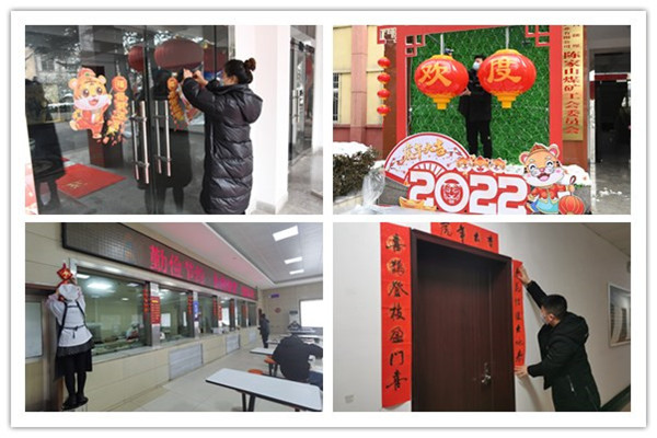 在辦公樓LED大屏播放著新年祝福語,進(jìn)門處兩側(cè)懸掛了“歡度春節(jié)”四個(gè)字樣的燈籠,張貼了虎年吉祥卡通圖案,辦公樓、信息樓、職工食堂和樹枝上的紅燈籠已經(jīng)全部懸掛到位,區(qū)隊(duì)樓職工們也正在欣喜地張貼礦黨政送來的祝福春聯(lián),礦區(qū)內(nèi)外、道路兩側(cè),華麗的燈光也已經(jīng)全部安裝到位,整個(gè)礦區(qū)被各種裝扮的分外靚麗,凝聚了礦黨政對(duì)全礦干部職工的美好祝福,也讓職工家屬感受到了濃濃的春意。