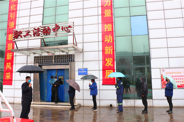 “請大家準備好核酸預約碼,戴好口罩,保持安全間隔距離,有序排隊行進”。3月16日一早,玉華煤礦全體動員進行全員核酸檢測,醫(yī)護人員、志愿青年和全礦干部職工風雨兼程,攜手共同擔起戰(zhàn)“疫”責任。