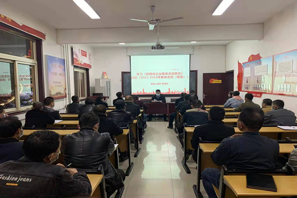 近日,在陳家山煤礦區(qū)隊學(xué)習(xí)室,學(xué)習(xí)《陜西省企業(yè)集體合同條例》,討論《2022-2024年集體合同(草案)》、《2022年工資集體合同(草案)》成了熱點話題。