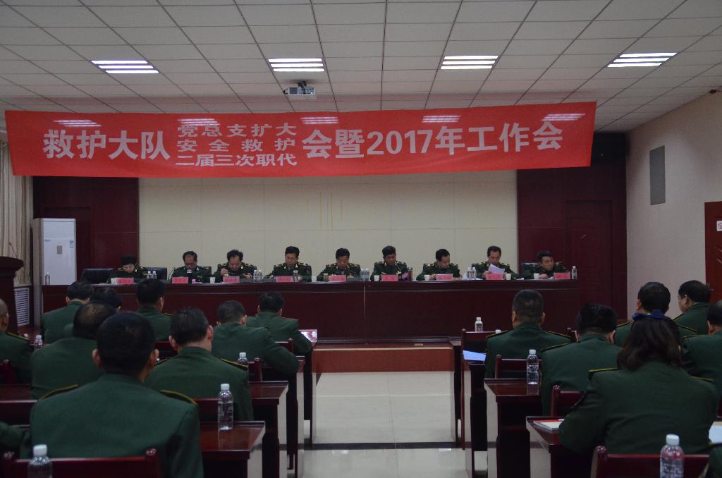 1月25日上午,救護(hù)大隊(duì)黨總支擴(kuò)大會(huì)、二屆三次職代會(huì)、安全救護(hù)會(huì)暨2017年工作會(huì)在機(jī)關(guān)六樓會(huì)議室召開(kāi)。會(huì)議全面分析大隊(duì)2017年隊(duì)伍發(fā)展面臨的挑戰(zhàn)與機(jī)遇,明確2017年工作目標(biāo)和工作思路,聚合發(fā)展動(dòng)力,突出發(fā)展優(yōu)勢(shì),深入推進(jìn)治虧創(chuàng)效和隊(duì)伍訓(xùn)練工作,嚴(yán)格抓好安全管理和黨建工作,為全面完成年度目標(biāo)任務(wù)和推進(jìn)隊(duì)伍持續(xù)穩(wěn)定發(fā)展提振士氣、凝聚人心。救護(hù)大隊(duì)黨政領(lǐng)導(dǎo)及各單位負(fù)責(zé)人、職工代表等40余人參加了大會(huì)。