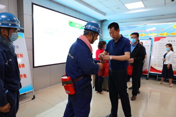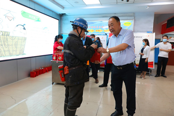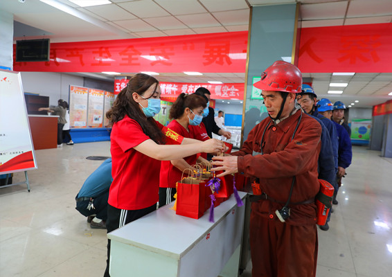 8時許,一切準備就緒,礦黨政和志愿者、協(xié)管員整齊列隊,靜候職工到來。歡快的歌曲中,候罐大廳人頭攢動,八點班入井和零點班升井的干部職工領(lǐng)取到情意滿滿的節(jié)日“禮包”,收到了“端午快樂,向你致敬!一定注意安全”等安全叮囑。