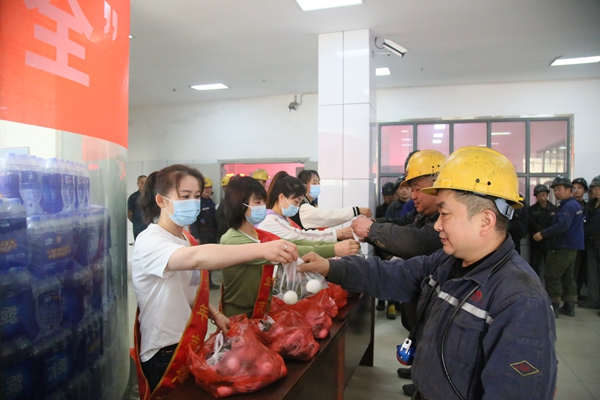 活動(dòng)中,該分公司組織青年志愿者、女工安全協(xié)管員,到井口為入井職工送上米粽和雞蛋等慰問禮物,為他們送上節(jié)日祝福和安全囑托,囑咐他們工作中一定要遵章守紀(jì),時(shí)刻牢記安全,讓生產(chǎn)一線的職工深深感受到節(jié)日傳遞的濃濃情意。