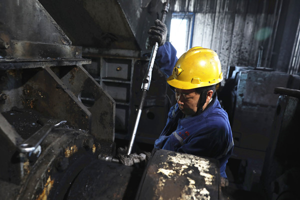 6月29日上午8時,隨著井下、地面各生產(chǎn)系統(tǒng)停止運行,各個崗位準備就緒,各項物資器具準備到位,各單位全力投入到設(shè)備安全檢修工作中,為期72小時的生產(chǎn)系統(tǒng)大檢修拉開帷幕。 按照預(yù)先部署,地面洗選區(qū)南風(fēng)井1#破碎機處,檢修人員拆除破碎機底座與滑道連接螺栓,破碎機與上方溜煤斗連接螺栓及主軸對輪、齒輪,取出軸承蓋,將新主、副軸齒輪嚙合依次固定完好;洗選系統(tǒng)1#膠帶巷、76#膠帶巷處,膠帶拆除、更換工作有序進行;四盤區(qū)膠帶大巷內(nèi),檢修人員對EBZ-320綜掘機右副鏟板螺絲進行修理,一時間,勞動號子震天響,揮汗如雨檢修忙。