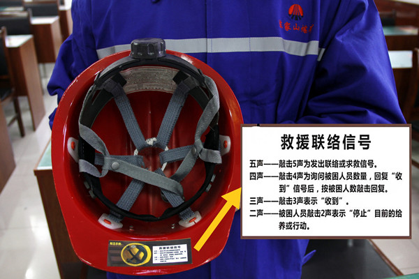 據(jù)悉,為建立礦山(隧道)事故中被困人員與救援人員約定的聯(lián)絡(luò)溝通,應(yīng)急管理部辦公廳印發(fā)《礦山(隧道)事故救援聯(lián)絡(luò)信號(試行)》。即,“5432”救援聯(lián)絡(luò)信號,五聲為尋求聯(lián)絡(luò),四聲為詢問被困人員數(shù)量,三聲為收到,二聲為停止。自國家應(yīng)急管理部《礦山(隧道)事故救援聯(lián)絡(luò)信號》頒布實施以來,該礦高度重視,積極響應(yīng),迅速行動,精心部署安排,及時采用防水材料將聯(lián)絡(luò)信號主要內(nèi)容印制成標(biāo)識,粘貼于職工安全帽殼內(nèi)部醒目位置,方便職工隨時熟悉和掌握,確保井下一線職工準(zhǔn)確理解和掌握聯(lián)絡(luò)信號內(nèi)容。