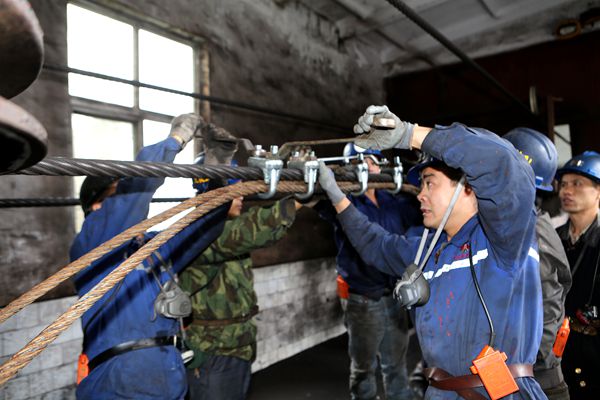 在大皮帶機房,該礦副總高金運與機電運轉(zhuǎn)隊主管郭思光等領(lǐng)導(dǎo)就更換大皮帶2#鋼絲繩頭任務(wù)進行了詳細部署,認真組織好人力物力,安排參戰(zhàn)的干部職工嚴格學(xué)習(xí)貫徹施工安全技術(shù)措施,認真細致地做好更換前的各項準備工作,并囑咐大家要時刻把安全工作放在第一位,細致把好每道工序,保質(zhì)保量完成工作任務(wù)。早上八點班大皮帶停運后,更換大皮帶2#鋼絲繩繩頭戰(zhàn)斗全面打響。該礦分管領(lǐng)導(dǎo)現(xiàn)場跟班管理,把關(guān)安全質(zhì)量,區(qū)隊主管郭思光同志認真指揮,帶領(lǐng)工長婿靜、班組李保成、馬建柱、雷文超、李鵬等四十余人全面投入到此項戰(zhàn)斗當中。大家迎難而上,緊密配合,嚴格按照措施要求實施各項作業(yè),參與更換鋼絲繩繩頭的廣大干群協(xié)同作戰(zhàn),充分發(fā)揚煤礦工人特別能吃苦、特別能戰(zhàn)斗、特別能奉獻的優(yōu)良作風(fēng),克服人員緊張、施工條件受限等不利因素,緊密配合,在安全的前提下,有條不紊的推進工作進度,經(jīng)過廣大干群近十幾個小時的緊張鏖戰(zhàn),此項工作已在安全的前提下圓滿完成,為礦井安全生產(chǎn)奠定了堅實基礎(chǔ)。