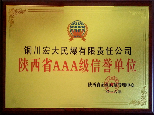 近日,由陜西省企業(yè)質(zhì)量管理中心舉辦的2016年度全省企業(yè)質(zhì)量信譽(yù)等級評選結(jié)果揭曉,銅川宏大民爆有限責(zé)任公司被授予“陜西省AAA級信譽(yù)單位”。