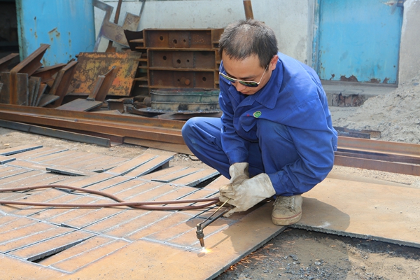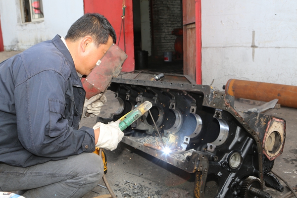 該礦機電車間廣大職工充分發(fā)揮自身技術(shù)優(yōu)勢和主觀能動性,爭分奪秒對升井維修的機械設(shè)備進行細(xì)致整形檢修調(diào)試。電焊、氣割作業(yè)過程中產(chǎn)生大量的熱量,在高溫天氣的雙重作用下,作業(yè)人員周圍的溫度達到了60℃左右。為了避免紫外線和電火弧灼傷皮膚,鉚焊組的職工每天要穿著從頭到腳全副武裝的工作服,堅守在異常炎熱的作業(yè)環(huán)境下,盡心盡力的做好自制件加工和采掘機械設(shè)備維護調(diào)試工作,大家堅信檢修設(shè)備的高品質(zhì)就是對礦井安全生產(chǎn)最大的保障。
