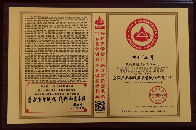 堅(jiān)持“以質(zhì)量創(chuàng)品牌、以品牌拓市場”工作方針,嚴(yán)格執(zhí)行ISO9001質(zhì)量管理體系,持續(xù)加強(qiáng)和改進(jìn)質(zhì)量管理工作,積極開展QC創(chuàng)新活動,不斷優(yōu)化配方結(jié)構(gòu)、生產(chǎn)工藝,推動產(chǎn)品質(zhì)量不斷提升,“同塑”PE鋼絲網(wǎng)骨架管、高壓膠管等礦用產(chǎn)品的阻燃、抗靜電、拉伸屈服強(qiáng)度等關(guān)鍵指標(biāo)優(yōu)于國家標(biāo)準(zhǔn),處于國內(nèi)先進(jìn)水平。以綜合評價(jià)得分第一名的好成績,榮獲了“銅川質(zhì)量獎(jiǎng)”。連續(xù)3年榮獲了“全國產(chǎn)品和服務(wù)質(zhì)量誠信品牌”“全國管材管件行業(yè)質(zhì)量領(lǐng)先企業(yè)”等榮譽(yù)。