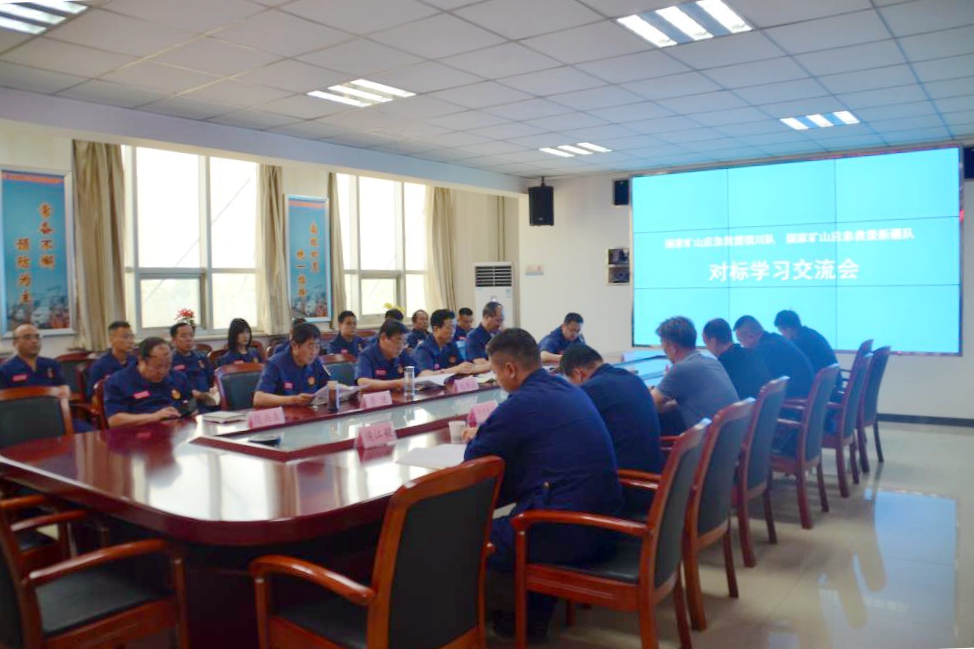 隨后,國家礦山應(yīng)急救援新疆隊分成兩個小組進(jìn)行了分組對標(biāo),與公司礦山救護(hù)大隊深度探討了各項(xiàng)工作方面的新思路、新方法、新舉措。