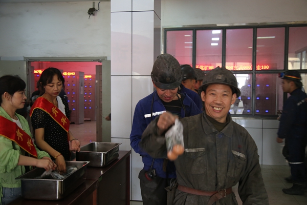 品米粽吃雞蛋,嚼在嘴里甜在心上,喜悅的臉上露出了幸福的微笑。互道安康,共祝平安,把分公司領(lǐng)導(dǎo)送上節(jié)日的祝福和安全叮囑裝進(jìn)心里,播灑在深深的巷道,在激情四射的煤海深處,撐起安全為天,質(zhì)量為本的銅墻鐵壁。