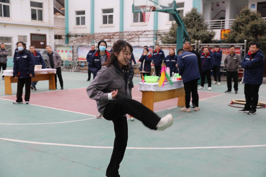 體育比拼,“賽”出活力。大年初五,“凝心聚力啟新程、幸福平安慶龍年”職工文體活動熱火朝天的進(jìn)行中,活動設(shè)有“踢毽子、蒙眼彈瓶蓋、三人兩足、一圈到底”等10項戶外體育運動項目,活動內(nèi)容豐富多彩,現(xiàn)場精彩紛呈,參賽職工們團(tuán)結(jié)協(xié)作、奮勇爭先,用智慧和力量進(jìn)行比拼,加油聲、吶喊聲、歡笑聲不絕于耳,大家熱情高漲、樂在其中,盡情享受文體活動帶來的歡樂。